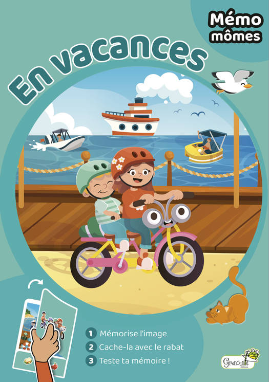 Un jeu de mémoire original qui fonctionne comme un cherche-et-trouve. L’enfant observe d’abord l’image, puis la cache grâce à un rabat intégré et doit se souvenir des éléments présents dans le décor.
