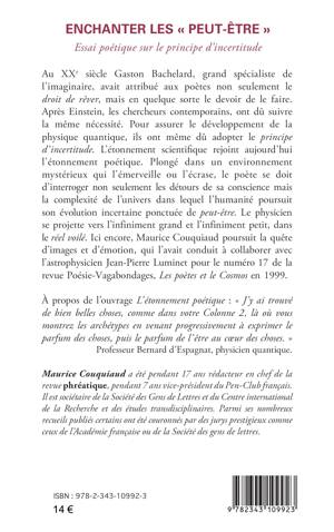 L'étonnement scientifique rejoint aujourd'hui l'étonnement poétique. Plongé dans un environnement mystérieux qui l'émerveille ou l'écrase, le poète se doit d'interroger non seulement les détours de sa conscience mais la complexité de l'univers dans lequel l'humanité poursuit son évolution incertaine ponctuée de peut-être. Maurice Couquiaud poursuit ici sa quête d'images et d'émotion, qui l'avait conduit à collaborer avec l'astrophysicien Jean-Pierre Luminet.