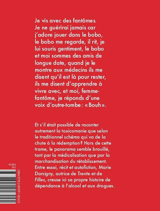 Marie Darsigny creuse ici son histoire de dépendance à l'alcool et aux drogues, histoire qui remonte à l'adolescence et se déploie sur deux décennies. Mêlant récit et essai, elle évoque des figures de la culture populaire (Amy Winehouse, Billie Holiday), des écrivaines (Marguerite Duras, Jean Rhys, Joan Didion, notamment), cite des écrits féministes et des études sur la question pour comprendre sa résistance aux discours sur la guérison. Intoxiquée fonctionnelle, délinquante assumée, Darsigny décrit avec humour son combat quotidien contre les attentes déçues et les péripéties de ses cures de désintoxication.