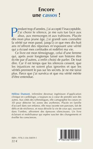Pendant trop d'années, j'ai accepté l'inacceptable. J'ai choisi le silence, je me suis tue face aux abus, aux mensonges et aux trahisons. Placée dès mon plus jeune âge, j'ai grandi sans connaître la vérité sur mon passé, jusqu'à ce que mes dix-huit ans m'offrent des réponses m'exposant une vérité qui a écrasé mes certitudes et redéfini ma vie. Ce livre est mon témoignage, celui d'une femme qui, après avoir longtemps laissé son histoire être écrite par d'autres, a enfin choisi de parler. De tout dire. Car il est temps que les silences cessent, que les injustices ne soient plus ignorées et que les vérités prennent le pas sur les secrets. Je ne me tairai plus. Parce que j'ai survécu et que ma vérité mérite d'être entendue.
