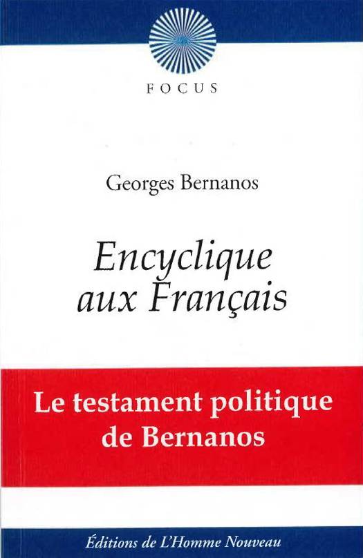 L'encyclique aux Français est le dernier texte écrit par Georges Bernanos avant de mourir, et est restée pour cette raison inachevée. Il s'y adresse aux Français en dressant un regard percutant sur les hommes d'Église et en constatant que ce qui a manqué à l'Église de France « depuis deux cents ans, c'est la vertu de force ». Sans concession, il renoue avec sa Grande-Peur des bien-pensants, dressant le constat de l'échec durable de la politique de Ralliement imposée par le pape Léon XIII, qui a créé « une sorte de remous moral beaucoup plus profond que celui de la Russie en 1917 ou de la France de Vichy en 1940. » Georges Bernanos écrit ce testament politique alors qu’il vient à peine d’achever les dialogues d’un film inspiré par La dernière à l’échafaud, de Gertrud von Le Fort, que lui a demandés le Père Bruckberger, Dialogues des carmélites, qui représentent véritablement son testament spirituel.