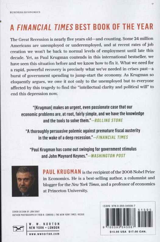 How bad have things gotten? How did we get stuck in what now can only be called a depression? And above all, how do we free ourselves? Krugman pursues these questions with his characteristic lucidity and insight. He has a powerful message for anyone who has suffered over these past four years--a quick, strong recovery is just one step away, if our leaders can find the "intellectual clarity and political will" to end this depression now.