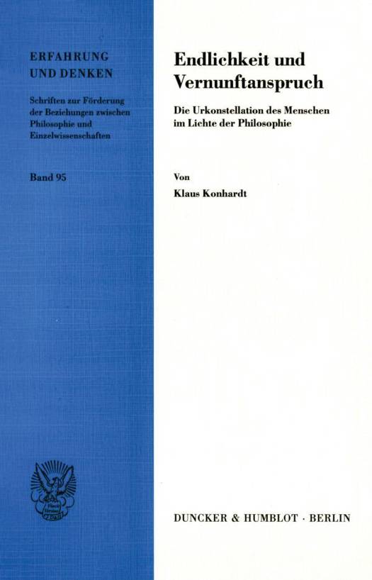 Die klassische Bestimmung des Menschen als eines »vernünftigen Lebewesens« (animal rationale) bezeichnet das philosophische Grundproblem der Einheit des Menschen als Natur- und Vernunftwesen. Klaus Konhardt analysiert diese »Urkonstellation« des Menschen, das Spannungsverhältnis von »unbedingtem« Vernunftanspruch und »bedingter«, endlicher Natur systematisch und philosophiegeschichtlich.