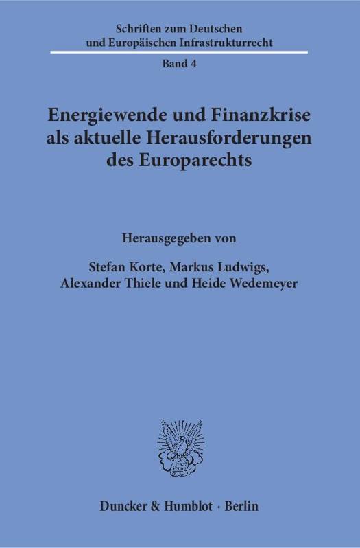 Das Jahrhundertprojekt Energiewende prägt ebenso wie die Bewältigung der Finanzkrise den Diskurs unter Rechts- und Wirtschaftswissenschaftlern und stellt die europäische Einigung vor immense Herausforderungen. Schlaglichter bilden zum einen die umstrittene Beihilfenkonformität der Förderung erneuerbarer Energien sowie die europarechtlichen Regelungen zum beschleunigten Netzausbau. Zum anderen ist mit der Bankenunion ein neues Kapitel der Bankenaufsicht in Europa aufgeschlagen worden, das durch einen einheitlichen Aufsichtsmechanismus, eine ergänzte Einlagensicherung und einen einheitlichen Abwicklungsmechanismus geprägt wird.Der vorliegende Band dokumentiert ein durch den Würzburger Lehrstuhl von Professor Dr. Markus Ludwigs in Zusammenarbeit mit der Vereinigung Göttinger Europarechtler e.V. organisiertes Symposium unter dem Titel »Energiewende und Finanzkrise als aktuelle Herausforderungen des Europarechts«, das am 27./28. Februar 2015 an der Universität Würzburg stattfand.