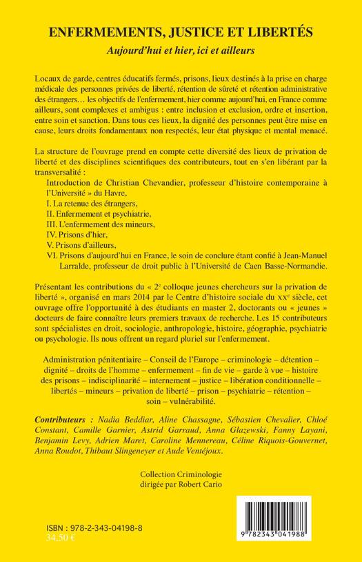 Les objectifs de l'enfermement, hier comme aujourd'hui, en France comme ailleurs, sont complexes et ambigus : entre inclusion et exclusion, ordre et insertion, soin et sanction. Dans des lieux aussi divers que les locaux de garde, les centres éducatifs fermés, les prisons, les centres médicaux fermés (etc.), la dignité des personnes peut être mise en cause, leurs droits fondamentaux non respectés, leur état physique et mental menacé.