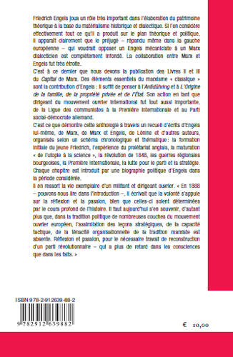Friedrich Engels joua un rôle très important dans l’élaboration du patrimoine théorique à la base du matérialisme historique et dialectique. Si l’on considère effectivement tout ce qu’il a produit sur le plan théorique et politique, il apparaît clairement que le préjugé – répandu même dans la gauche européenne – qui voudrait opposer un Engels mécaniciste à un Marx dialecticien est complètement infondé. La collaboration entre Marx et Engels fut très étroite. C’est à ce dernier que nous devons la publication des Livres II et III du Capital de Marx. Des éléments essentiels du marxisme « classique » sont la contribution d’Engels : il suffit de penser à l’Antidühring et à L’Origine de la famille, de la propriété privée et de l’État. Son action en tant que dirigeant du mouvement ouvrier international fut tout aussi importante, de la Ligue des communistes à la Première Internationale et au Parti social-démocrate allemand. C’est ce que démontre cette anthologie à travers un recueil d’écrits d’Engels lui-même, de Marx, de Marx et Engels, de Lénine et d’autres auteurs, organisés selon un schéma chronologique et thématique: la formation initiale du jeune Friedrich, l’expérience du prolétariat anglais, la maturation « de l’utopie à la science », la révolution de 1848, les guerres régionales bourgeoises, la Première Internationale, la lutte pour le parti et la stratégie. Chaque chapitre est introduit par une biographie politique d’Engels dans la période considérée. Il en ressort la vie exemplaire d’un militant et dirigeant ouvrier. « En 1888 – pouvons nous lire dans l’introduction –, il écrivait que la volonté s’appuie sur la réflexion et la passion, bien que celles-ci soient déterminées par le cours profond de l’histoire. Il faut aujourd’hui s’en souvenir, d’autant plus que, dans la tradition politique de nombreuses couches du mouvement ouvrier européen, l’assimilation des leçons stratégiques, de la capacité tactique, de la ténacité organisationnelle de la tradition marxiste est absente. Réflexion et passion, pour le nécessaire travail de reconstruction d’un parti révolutionnaire – qui a plus de retard dans les consciences que dans les faits. »