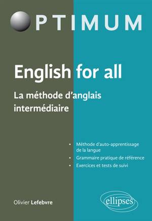 « English for all » a pour objet l’acquisition d’une grammaire académique en partant des fondements de la langue tels que « les sujets, pronoms, le rôle des auxiliaires et les différents temps » jusqu’à un niveau avancé d’assimilation. L’utilisateur de cette méthode cheminera à travers un apprentissage chronologique ou en consultant les temps et points grammaticaux lui semblant primordiaux à sa guise et à son rythme.