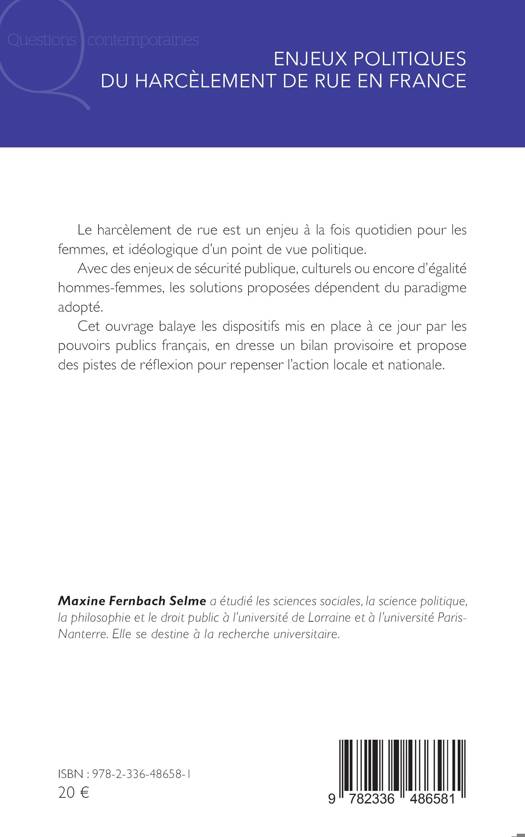 Le harcèlement de rue est un enjeu à la fois quotidien pour les femmes, et idéologique d'un point de vue politique. Avec des enjeux de sécurité publique, culturels ou encore d'égalité hommes-femmes, les solutions proposées dépendent du paradigme adopté. Cet ouvrage balaye les dispositifs mis en place à ce jour par les pouvoirs publics français, en dresse un bilan provisoire et propose des pistes de réflexion pour repenser l'action locale et nationale.