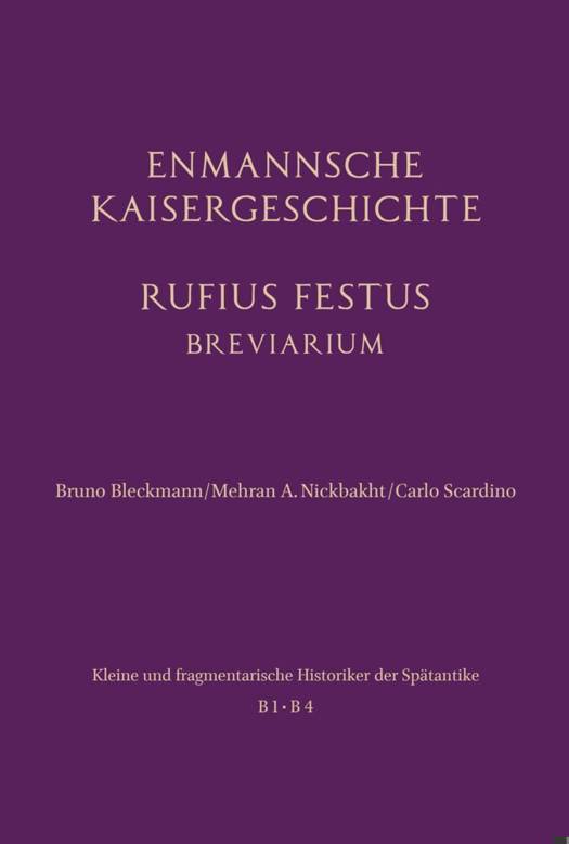 Der Doppelband umfasst zum einen das als "Enmannsche Kaisergeschichte" (B 1) bekannte, aber nicht mehr im Original erhaltene lateinische Geschichtswerk aus dem 4. Jahrhundert, das hier als Rekonstruktion auf der Basis späterer Autoren vorgelegt wird. Zum anderen enthält der Band das um 370 n. Chr. verfasste Breviarium des Rufius Festus (B 4), der zu den Benutzern der "Enmannschen Kaisergeschichte" gehörte und in seinem knappen Werk die Expansion des Imperium Romanum anhand der einzelnen Provinzen nachzeichnete. Der lateinische Originaltext des Breviarium wird von einer deutschen Übersetzung und einem philologisch-historischen Kommentar begleitet.