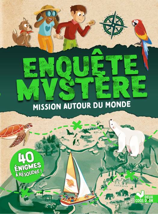 | Hugo et Mia, accompagnés de leur chien Péplum, partent à la recherchent de leur oncle explorateur, qui a mystérieusement disparu alors qu'il était sur les traces d'une créature fantastique. Grâce à un talisman magique, les voilà transportés à l'autre bout du monde. Ils vont devoir parcourir montagne, désert, jungle, océan, et résoudre pas moins de 40 énigmes (labyrinthes, jeux de logique, jeux d'association, cherche et trouve, intrus, etc.). ! Jusqu'où va les mener cette incroyable expédition ? À toi de le découvrir... Ce livre te permettra en outre de mieux connaître notre planète. On apprend en s'amusant ! |