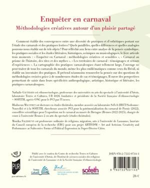 Comment établir des convergences entre une diversité de pratiques et d’esthétiques portant sur l’étude des carnavals et des pratiques festives ? Quels parallèles, quelles différences et quelles analogies pouvons-nous établir sur de tels objets ? Pour réfléchir aux liens entre analyse de la pensée symbolique, les pratiques sociales et les études littéraires, historiques, scéniques ou musicologiques, le livre articule trois moments : « Enquêter en Carnaval : méthodologies créatives et sensibles », « Carnaval au prisme de l’histoire, des rites et des mythes », « Les territoires de carnaval : témoignages et retours d’expériences ». La cartographie des pratiques carnavalesques étant tellement large, l’ouvrage ne peut traiter de tous les carnavals du monde, même les plus emblématiques comme ceux du Brésil, ni établir un inventaire des pratiques. Il prétend néanmoins renouveler la pensée sur des questions de méthodologies croisées grâce à de nombreuses études de cas et témoignages. Il ouvre des perspectives permettant de saisir dans leurs spécificités anthropologique, artistique, historique et littéraire, les pratiques carnavalesques.