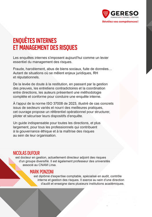 À l’appui de la norme ISO 37008 de 2023, illustré de cas concrets issus de secteurs variés et nourri des meilleures pratiques, cet ouvrage propose un référentiel opérationnel pour structurer, piloter et sécuriser leurs dispositifs d’enquête.