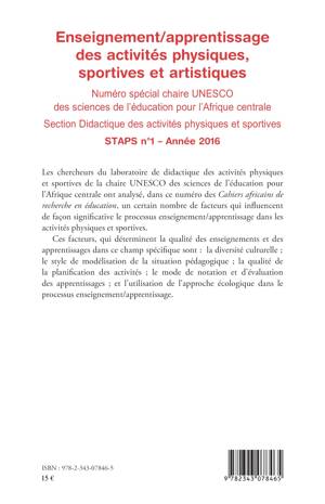 Les chercheurs du laboratoire de didactique des activités physiques et sportives de la chaire UNESCO des sciences de l'éducation pour l'Afrique centrale ont analysé un certain nombre de facteurs (diversité culturelle, le style de modélisation de la situation pédagogique, le mode de notation et d'évaluation des apprentissages...) qui influencent de façon significative le processus enseignement/apprentissage dans les activités physiques et sportives.
