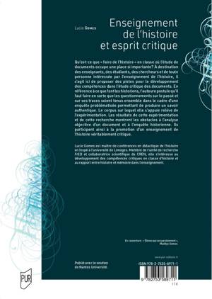 Qu'est-ce que "faire de l'histoire" en classe où l'étude de documents occupe une place si importante ? A destination des enseignants, des étudiants, des chercheurs et de toute personne intéressée par l'enseignement de l'histoire, il s'agit ici de proposer des pistes pour le développement des compétences dans l'étude critique des documents. En référence à ce que font les historiens, l'auteure postule qu'il faut faire en sorte que les questionnements sur le passé et sur ses traces soient tenus ensemble dans le cadre d'une enquête problématisée permettant de produire un savoir authentique. Le corpus sur lequel elle s'appuie relève de l'expérimentation. Les résultats de cette expérimentation et de cette recherche montrent les obstacles à l'analyse objective d'un document et à l'enquête historienne. Ils participent ainsi à la promotion d'un enseignement de l'histoire véritablement critique.