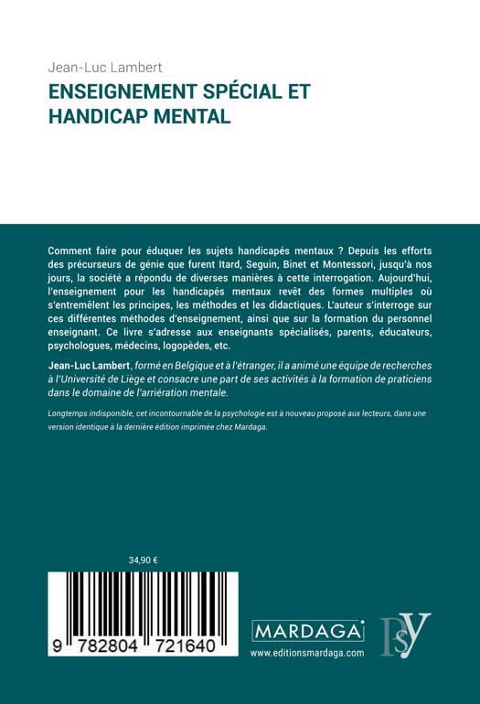 Comment faire pour éduquer les sujets handicapés mentaux ? Depuis les efforts des précurseurs de génie que furent Itard, Seguin, Binet et Montessori, jusqu'à nos jours, la société a répondu de diverses manières à cette interrogation. Aujourd'hui, l'enseignement pour les handicapés mentaux revêt des formes multiples où s'entremêlent les principes, les méthodes et les didactiques. L'auteur s'interroge sur ces différentes méthodes d'enseignement, ainsi que sur la formation du personnel enseignant. Ce livre s'adresse aux enseignants spécialisés, parents, éducateurs, psychologues, médecins, logopèdes, etc.