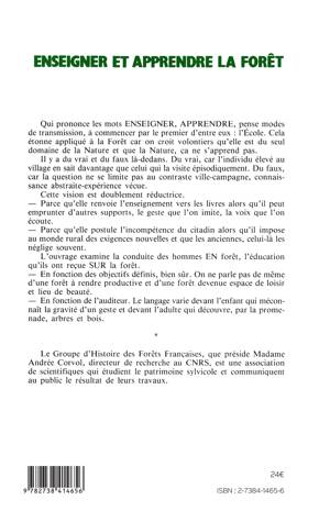 Qui prononce les mots ENSEIGNER, APPRENDRE, pense modes de transmission, à commencer par le premier d'entre eux : l'École. Cela étonne appliqué à la Forêt car on croit volontiers qu'elle est du seul domaine de la Nature et que la Nature, ça ne s'apprend pas. Il y a du vrai et du faux là-dedans. Du vrai, car l'individu élevé au village en sait davantage que celui qui la visite épisodiquement. Du faux, car la question ne se limite pas au contraste ville-campagne, connaissance abstraite-expérience vécue.
