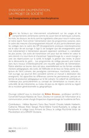 Faire entrer l'alimentation dans les programmes scolaires, et plus particulièrement pour les collèges dans le cadre des EPI (Enseignements pratiques interdisciplinaires) est le coeur de cet ouvrage. Il s'agit ici de souligner que des enseignements ayant trait indirectement à l'alimentation peuvent cependant contribuer à ensibiliser les plus jeunes. L'attention se tourne sur les formes variables d'actions pédagogiques, les outils, les méthodes et les lieux où l'enjeu porte sur la lecture de l'écrit culinaire, des paradigmes commensaux, marchands, culturels... Ce manuel à destination des enseignants fait apparaître les différences comme les permanences perçues en termes de production pédagogique sur le fait culinaire.