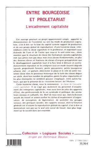 L'auteur entend cerner les contours, au sein du mode de production capitaliste, d'une troisième classe : personnel d'encadrement des entreprises capitalistes, des appareils d'Etat mais aussi, professionnels de la vie syndicale, animateurs socioculturels...