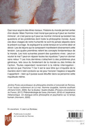 Que nous soyons des êtres moraux, l’histoire du monde permet certes d’en douter. Mais l’homme n’est moral que parce qu’il peut se montrer immoral ; et c’est parce qu’il peut se montrer immoral qu’existent les questions et les problèmes dont traite la philosophie morale. Aussi ces deux visages de notre humanité ne sont-ils jamais séparés dans le présent ouvrage. Ils expliquent la corde tendue en lui entre désir et devoir. Les dix leçons qui le composent manifestent diversement cette tension. Les quatre premières relient les concepts fondamentaux de la morale. Les trois suivantes posent des questions vives : peut-on vouloir le mal ? peut-on réparer toutes les injustices ? peut-on donner sans retour ? Les trois dernières s’attachent à des problèmes plus généraux, tels ceux du fondement de la morale ou des limites de l’action. Toutes cependant reviennent à la même interrogation : qu’est-ce que l’homme ? Car il est le seul être qui s’inquiète de la manière dont il doit conduire sa vie pour honorer l’espèce à laquelle il appartient – bien qu’il puisse aussi étouffer dans sa personne cette inquiétude même.