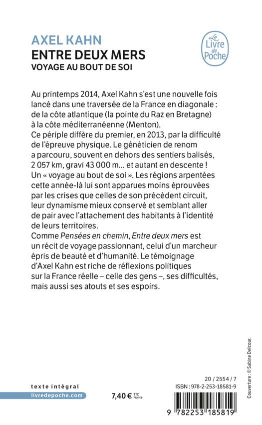 Comme Pensées en chemin, Entre deux mers est un récit de voyage passionnant, celui d'un marcheur épris de beauté et d’humanité. Le témoignage d’Alex Kahn est riche de réflexions politiques sur la France réelle – celle des gens –, ses difficultés, mais aussi ses atouts et ses espoirs.