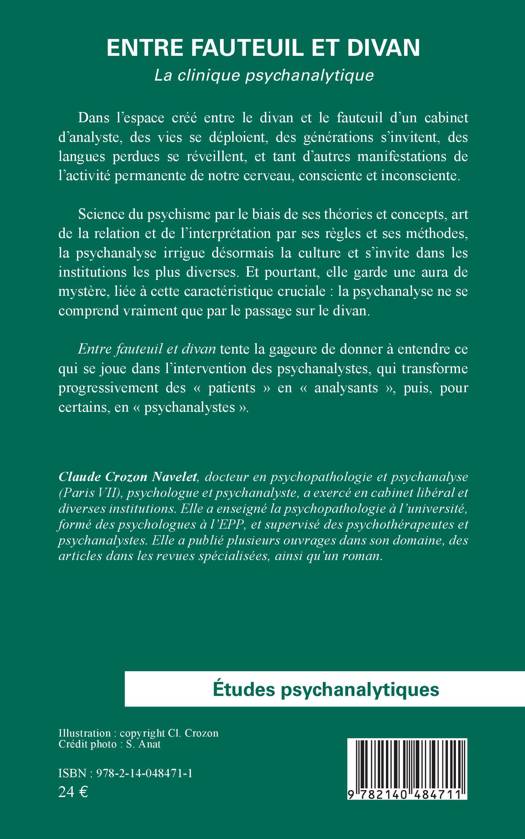 Dans l'espace créé entre le divan et le fauteuil d'un cabinet d'analyste, des vies se déploient, des générations s'invitent, des langues perdues se réveillent, et tant d'autres manifestations de l'activité permanente de notre cerveau, consciente et inconsciente. Science du psychisme par le biais de ses théories et concepts, art de la relation et de l'interprétation par ses règles et ses méthodes, la psychanalyse irrigue désormais la culture et s'invite dans les institutions les plus diverses. Et pourtant, elle garde une aura de mystère, liée à cette caractéristique cruciale: la psychanalyse ne se comprend vraiment que par le passage sur le divan. Entre fauteuil et divan tente la gageure de donner à entendre ce qui se joue dans l'intervention des psychanalystes, qui transforme progressivement des patients en analysants, puis, pour certains, en psychanalystes .