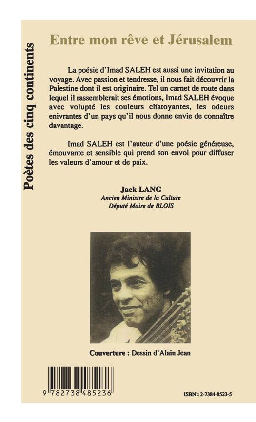 La poésie d'Imad Saleh est aussi une invitation au voyage. Avec passion et tendresse, il nous fait découvrir la Palestine dont il est originaire. Tel un carnet de route dans lequel il rassemblerait ses émotions, Imad Saleh évoque avec volupté les couleurs chatoyantes, les odeurs enivrantes d'un pays qu'il donne envie de connaître davantage.