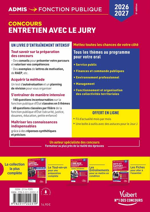 Ce livre propose un entraînement intensif pour réussir l'épreuve d'entretien avec le jury des concours