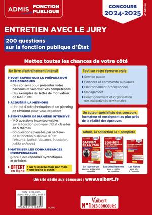 Ce livre propose un entraînement intensif pour réussir l'épreuve d'entretien avec le jury des concours