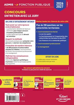Ce livre propose un entraînement intensif à l'épreuve d'entretien avec le jury des concours et examens professionnels de la fonction publique territoriale de catégories A et B :
