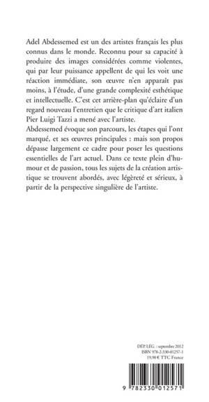 Adel Abdessemed, à peine quarante ans, est l'un des artistes français les plus connus dans le monde. En 2012, après des expositions récentes à Nagoya, Venise, Berlin et New York, son oeuvre fait l'objet d'une rétrospective au Centre Georges Pompidou à Paris (à partir du 3 octobre 2012 et jusqu'au 7 janvier 2013). Connue pour sa capacité à produire des images considérées comme violentes et brutales, qui appellent de qui les voit une réaction immédiate, elle n'en apparaît pas moins, à l'étude, d'une grande complexité philosophique, littéraire et intellectuelle. C'est sur cet arrière-fond demeuré longtemps caché que s'explique Abdessemed dans l'entretien mené avec le sémiologue et critique d'art italien Pier Luigi Tazzi. Son propos, qui évoque son propre parcours, les étapes qui l'ont marqué,