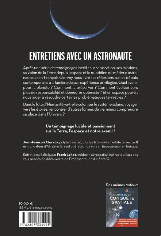 Après une série de témoignages inédits sur sa vocation, ses missions, sa vision de la Terre depuis l’espace et le quotidien du métier d’astronaute, Jean-François Clervoy nous livre ses réflexions sur les débats contemporains à la lumière de son expérience privilégiée. Quel avenir pour la planète ? Comment la préserver ? Comment évoluer versplus de responsabilité et demeurer optimiste ? Et si l’espace pouvait nous aider à résoudre certaines problématiques terrestres ?