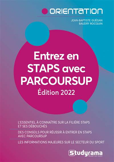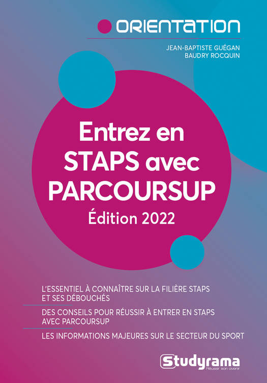 Vous aimez le sport, vous le pratiquez et son actualité n’a pas de secret pour vous. Vous rêvez d’en vivre et naturellement vous voulez en faire votre métier. À l’heure de la réflexion et des choix, votre orientation va déterminer la réalité de vos envies et la faisabilité de vos ambitions. Parmi toutes les filières du sport, celle des STAPS (sciences et techniques des activités physiques et sportives) offre assurément le plus de débouchés. C’est aussi la plus demandée. Entrer en STAPS n’est pas simple. La filière est sélective et, trop souvent, les très nombreux candidats qui postulent ne savent pas à quoi s’attendre. Ce livre a pour objectif d’être le plus clair et le plus efficace possible pour : – vous faire connaître les STAPS ; – faciliter votre orientation ; – vous assurer que vous avez toutes les clefs pour comprendre les attentes de la filière et y réussir.