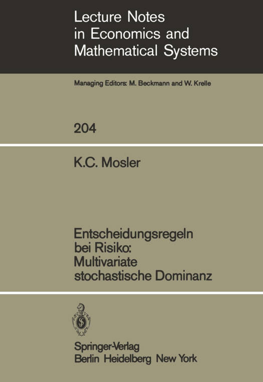 Nachdem in den letzten Jahren das Konzept der stochasti- schen Dominanz fur univariate Prospekte breite Anwendung in der Entscheidungsanalyse gefunden hat, scheint es an der Zeit zu sein, dies auch fur multivariate und allge- meinere Prospekte zu versuchen. Die vorliegende Monogra- phie behandelt die Theorie der stochastischen Dominanz fur univariate und besonders fur multivariate Prospekte sowie fur Prospekte in allgemeineren Raumen. Fur eine groBe Anzahl okonomisch relevanter Nutzenklassen werden die Dominanzrelationen durch Bedingungen an die Wahrschein- lichkeitsverteilungen der Prospekte charakterisiert. Der abschlieBende Anwendungsteil enthalt auBer durchgerechne- ten Beispielen auch Hinweise auf weitere Anwendungen in der Stochastik und im Operations Research. Die Arbeit ist die leicht erweiterte Fassung eines Manu- skripts, das im November 1981 yom Fachbereich Wirtschafts- und Organisationswissenschaften der Hocbschule der Bundes- wehr Hamburg als Habilitationsschrift angenommen worden ist. Zu danken habe ich vielen und fur vieles: als erster sei Harry Hauptmann genannt, ohne des sen stetige Anregung und fordernde Geduld die Arbeit nicht zustande gekommen ware; Friedrich Schmid verdanke ich haufige und intensive Gesprache; Gunter Bamberg, Martin Beckmann, Harald Scherf und Norbert Schmitz haben wertvolle Diskussionen und Bemer- kungen beigesteuert, und Frau Sigrid Jensen-Mundt hat in muhevoller Arbeit das Manuskript geschrieben. Ihnen und allen nicht Genannten und nicht zuletzt dem Verlag gilt mein herzl icher Dank. K. C. M. INHALT EinfUhrung 1.