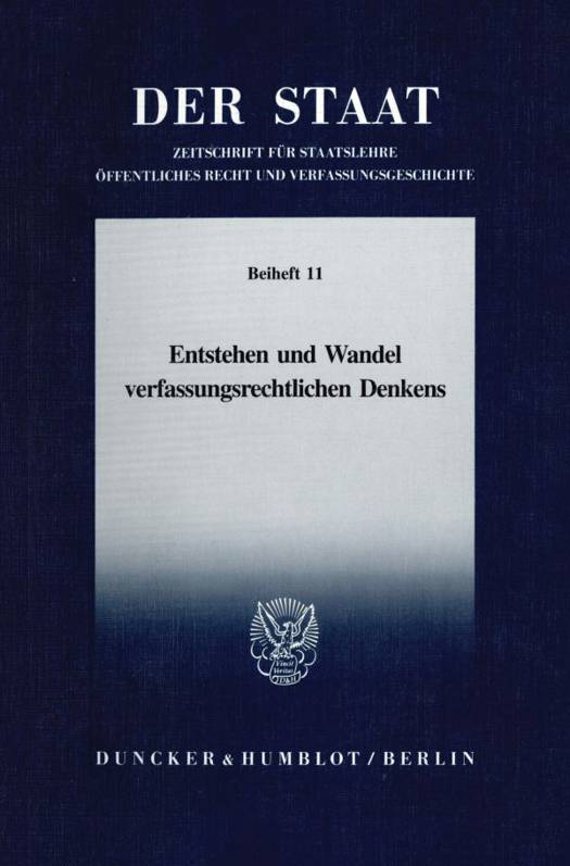 Das Entstehen des modernen Staates und sein Heranwachsen zu seiner heutigen Gestalt sind gründlich untersucht und vielfach beschrieben worden. Der Beginn des staatsrechtlichen Denkens und seine Entfaltung zu einem eigenständigen Zweig der Rechtswissenschaft haben die verfassungsgeschichtliche Forschung dagegen nicht mit der gleichen Kontinuität beschäftigt. Auf diese Lücke hat die »Vereinigung für Verfassungsgeschichte« mit ihrer Jahrestagung 1993 aufmerksam machen wollen.