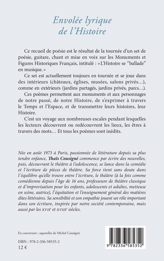 Ce recueil de poésie est le résultat de la tournée d'un set de poésie, guitare, chant et mise en voix sur les Monuments et Figures Historiques Français, intitulé L'Histoire se "ballade" en musique. Ce set est actuellement toujours en tournée et se joue dans des intérieurs (châteaux, églises, musées, salons privés...), comme en extérieurs (jardins partagés, jardins privés, parcs...). Ces poèmes permettent aux monuments et aux personnages de notre passé, de notre Histoire, de s'exprimer à travers le Temps et l'Espace, et de transmettre leurs histoires, leur Histoire. C'est un voyage aux nombreuses escales pendant lesquelles les lecteurs découvrent ou redécouvrent les lieux, les êtres à travers des mots... Et tous les poèmes sont inédits.