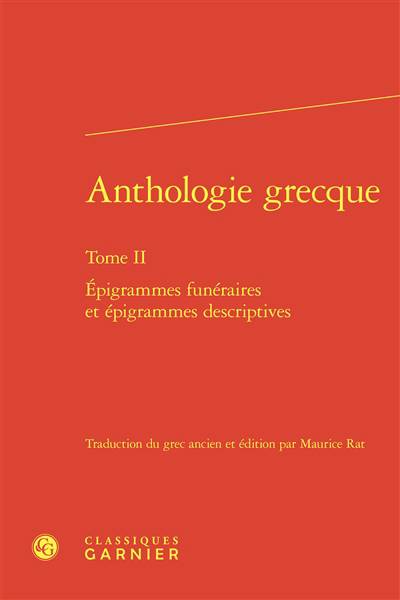 Anthologie grecque. Vol. 2. Epigrammes funéraires et épigrammes descriptives