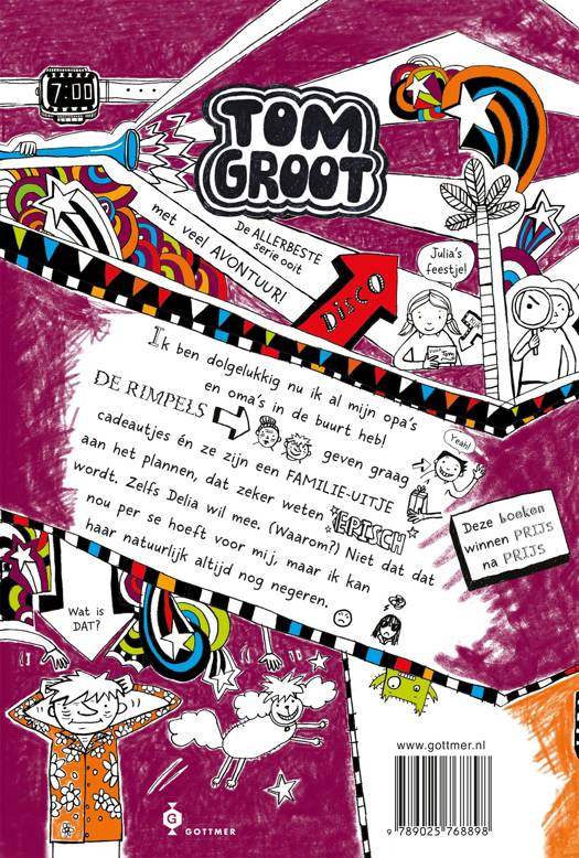 'Episch avontuur (echt wel!)' is deel 13 in de megapopulaire kinderboekenserie over Tom Groot. In dit boek plannen zijn opa en oma een familie-uitje...Tom is dolgelukkig nu hij al zijn opa's en oma's in de buurt heeft. Ze geven graag cadeautjes én ze zijn een familie-uitje aan het plannen dat zeker weten episch wordt. Zelfs Delia wil mee. Niet dat dat nou per se hoeft van Tom, maar hij kan haar natuurlijk altijd nog negeren. 'Episch avontuur (echt wel!)' is weer een heerlijk avontuurlijke toevoeging aan deze hilarische reeks. Ook fans van 'Het leven van een loser' zullen ervan smullen. Voor kinderen vanaf 9 jaar. De dagboeken van Tom Groot, die vol staan met lollige tekeningetjes en doedels, zijn al jarenlang waanzinnig populair. Sinds 2011 zijn er wereldwijd al 11 miljoen exemplaren van verkocht en de boeken verschijnen inmiddels in meer dan 40 talen. Auteur en illustrator Liz Pichon won met de serie onder andere de Roald Dahl Funny Prize voor het grappigste Britse kinderboek.
