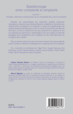 Proposer une symptomatique des interactions possibles entre "complexité" et "simplexité" au coeur de l'"épistémologie" de quelque discipline scientifique que ce soit, tel est le défi relevé dans cet ouvrage en deux volumes. Dans ce premier volume, les auteurs montrent comment penser la pensée, la méthode et la philosophie de la complexité et/ou de la simplexité.
