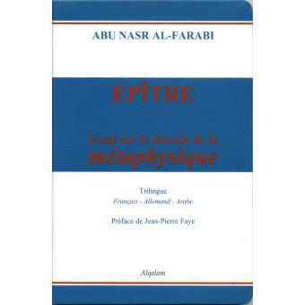 Ce que l'on nomme aujourd'hui couramment la « métaphysique occidentale » est né au coeur de l'Asie par la philosophie arabe. Elle survient, se déploie et se discute dans les plus grands moments de la philosophie arabe, du Xe au XIIe siècle, entre Boukhara, Bagdad et Damas, sans omettre des lieux de mi-chemin tels que Harran, en culture syriaque, dans un mixte gréco-arabe d'une grande fécondité. Mais son point source, plus au nord, se trace sur la rive du Syr-Daria, ligne-limite commune successivement aux empires perse, grec, abbasside. A Farab, lieu de naissance d'Abu Nasr Ibn Tarkan Al-Farâbi. Voici une vérité qui, aussi méconnue soit-elle, délivre la pensée du poids de quelques fables, surgies dans le tumulte des moments du grand chavirement, le pire de l'histoire européenne. La métaphysique naît avec simplicité par une simple épître, une Risâlah. Une épître qui s'annonce comme essai, Maqâla. Une Epître de l'Essai sur la Métaphysique ? Ou plus précisément : « Epître de l'Essai sur le Dessein de la Méta physique », Risâla maqâla fi-aghrad Ma-ba'd al-tabîah.