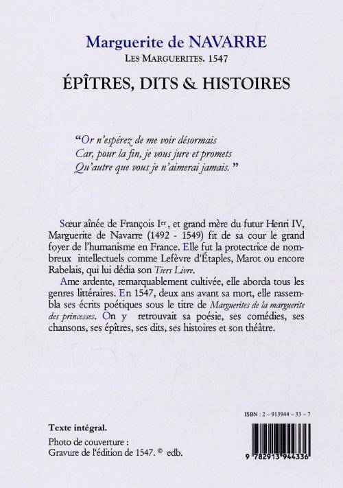 Les Marguerites de la Marguerite. Texte intégral en 5 tomes. Orthographe modernisée. Tome 4. Épîtres, Dits et Histoires. Comprend : Satyres et nymphes de Diane. Épîtres. Les quatre Dames et les quatre Gentilshommes.