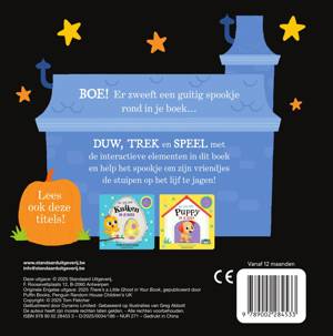 BOE! Er zweeft een guitig spookje rond in je boek… DUW, TREK en SPEEL met de interactieve elementen in dit boek en help het spookje om zijn vriendjes de stuipen op het lijf te jagen!