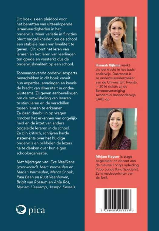 Toonaangevende onderwijsexperts benadrukken in dit boek vanuit hun expertise, ervaringen en kennis de kracht van diversiteit in onderwijsteams. Zij geven aanbevelingen om de ontwikkeling van leraren te stimuleren en de verschillen tussen leraren te erkennen. Ze gaan daarbij in op vragen rondom het erkennen van ongelijkheid en de inzet van anders opgeleide leraren in de school. Ze zijn kritisch, schrijven harde statements over het huidige onderwijs en prikkelen de lezers na te denken over hun eigen schoolorganisatie.