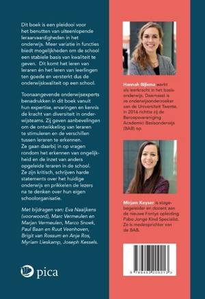 Dit boek is een pleidooi voor het benutten van uiteenlopende leraarvaardigheden in het onderwijs. Meer variatie in functies biedt mogelijkheden om de school een stabiele basis van kwaliteit te geven. Dit komt het leren van leraren én het leren van leerlingen ten goede en versterkt dus de onderwijskwaliteit op een school.