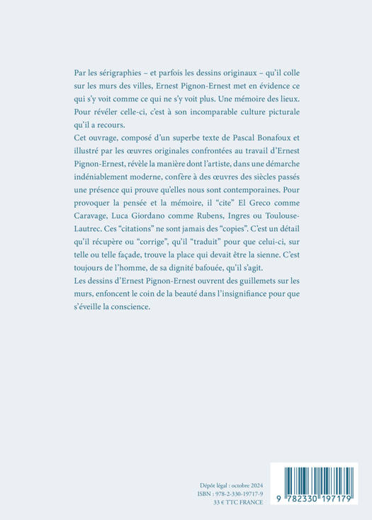 Par les sérigraphies ou dessins qu'il colle sur les murs des villes, Ernest Pignon-Ernest met en évidence ce qui s'y voit comme ce qui ne s'y voit plus. Pour provoquer la pensée et la mémoire, il cite El Greco comme Le Caravage, Luca Giordano comme Rubens ou Ingres. Ces citations sont des détails de leurs oeuvres qu'il récupère ou "corrige", qu'il "traduit" pour que, sur telle ou telle façade, ils trouvent la place qui devait être la leur. Les dessins d'Ernest Pignon-Ernest ouvrent des parenthèses dans les murs pour que s'éveille la conscience.