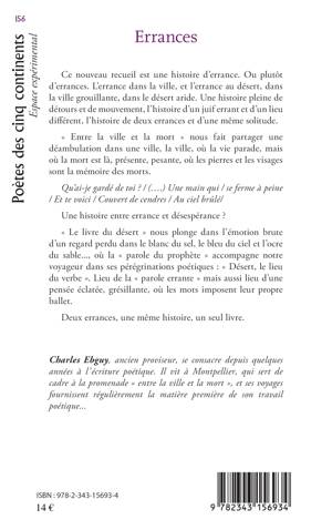 Ce nouveau recueil est une histoire d'errance. Ou plutôt d'errances. L'errance dans la ville, et l'errance au désert, dans la ville grouillante, dans le désert aride. Une histoire pleine de détours et de mouvement, l'histoire d'un juif errant et d'un lieu différent, l'histoire de deux errances et d'une même solitude. « Entre la ville et la mort » nous fait partager une déambulation dans une ville, la ville, où la vie parade, mais où la mort est là, présente, pesante, où les pierres et les visages sont la mémoire des morts.