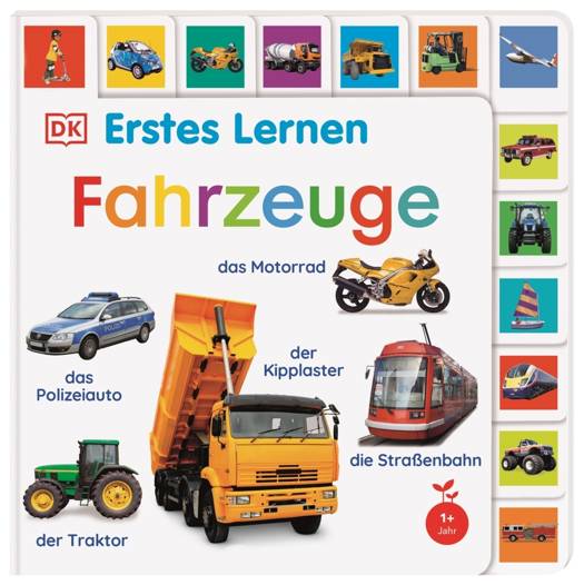 Mit dem stabilen Register oben und an der Seite sehen die Kinder alle Themen in bunten Bildern auf einen Blick und können so selbstständig entscheiden, welche Lieblingsseite sie aufschlagen möchten. Dank extrem stabiler Verarbeitung haben Kinderhände hier alles im Griff und ihre Feinmotorik wird dadurch gleichzeitig gefördert. In diesem Bilderbuch gibt es alles rund um Fahrzeuge zu entdecken.