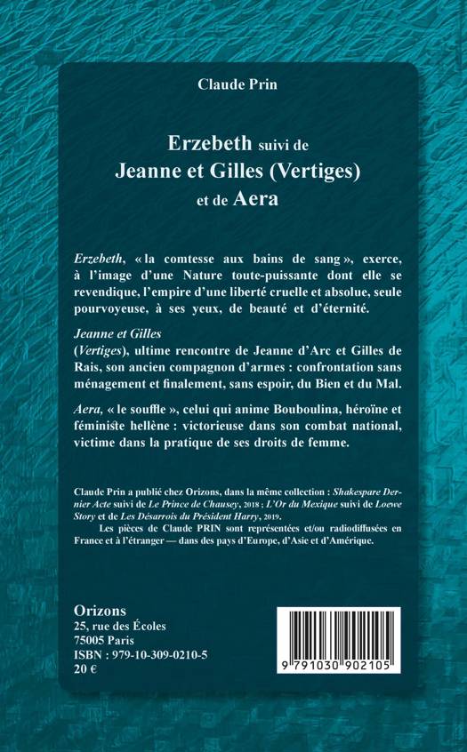 Erzebeth, « la comtesse aux bains de sang », exerce l'empire d'une liberté cruelle et absolue. Jeanne et Gilles. (Vertiges), ultime rencontre de Jeanne d'Arc et Gilles de Rais : confrontation sans ménagement du Bien et du Mal. Aera, « le souffle », celui qui anime Bouboulina, héroïne et féministe hellène : victime dans la pratique de ses droits de femme.