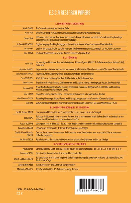 Cette revue de recherche de l'ESCA propose un large échantillon de contributions de jeunes chercheurs dans des champs variés allant de la linguistique à la sociologie de la culture à travers la littérature, le monde des affaires, les sciences sociales et économiques (articles en anglais et en français).
