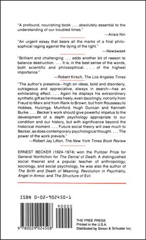 From the Pulitzer Prize-winning author of The Denial of Death, a penetrating and insightful perspective on the source of evil in our world. "A profound, nourishing book...absolutely essential to the understanding of our troubled times." --Anais Nin