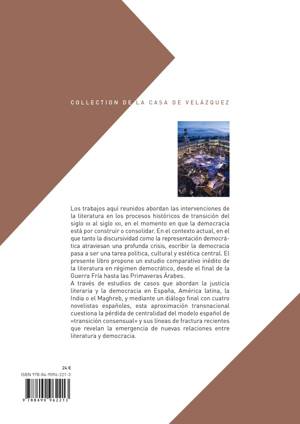Los trabajos aquí reunidos abordan las intervenciones de la literatura en los procesos históricos de transición del siglo XX al siglo xxi, en el momento en que la democracia está por construir o consolidar. En el contexto actual, en el que tanto la discursividad como la representación democrática atraviesan una profunda crisis, escribir la democracia pasa a ser una tarea política, cultural y estética central. El presente libro propone un estudio comparativo inédito de la literatura en régimen democrático, desde el final de la Guerra Fría hasta las Primaveras Árabes. A través de estudios de casos que abordan la justicia literaria y la democracia en España, América latina, la India o el Maghreb, y mediante un diálogo final con cuatro novelistas españoles, esta aproximación transnacional cuestiona la pérdida de centralidad del modelo español de transición consensual y sus líneas de fractura recientes que revelan la emergencia de nuevas relaciones entre literatura y democracia.